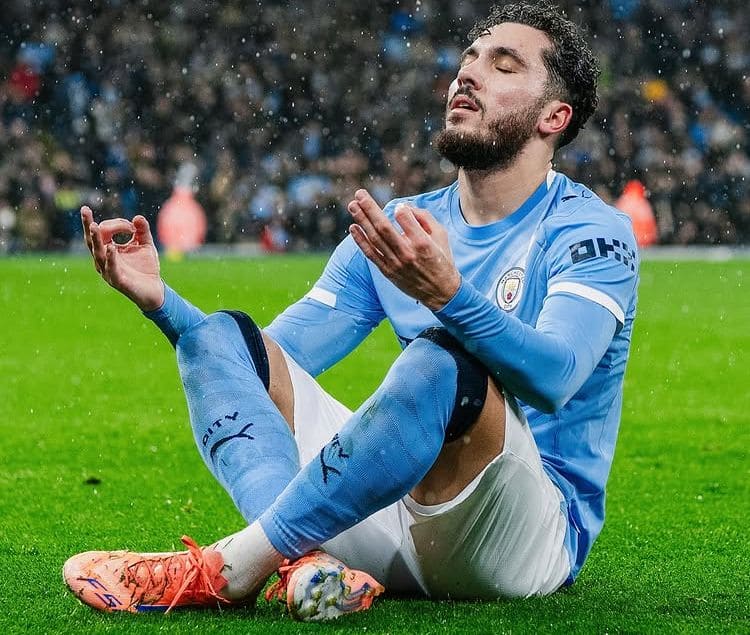 La estrella francesa realizó algunos movimientos de robot y luego se sentó con las piernas cruzadas en una pose de yoga después de darle la ventaja al City, que había realizado muchos cambios, a los 32 minutos.