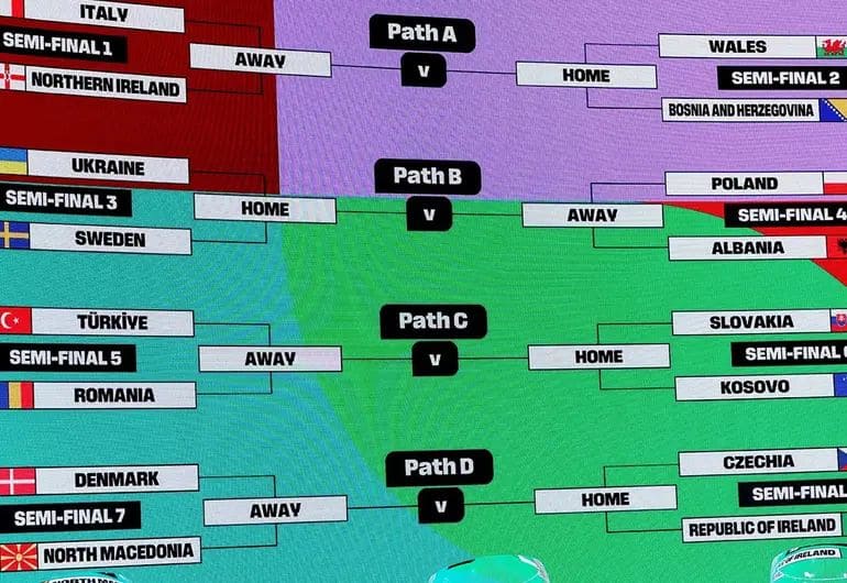 ASÍ SE JUGARÁ EL REPECHAJE DE LA UEFA PARA EL MUNDIAL 2026: